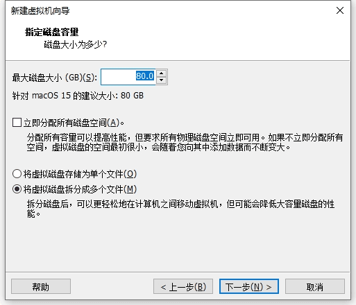 12 创建磁盘容量,建议至少80G,磁盘拆分多个文件
