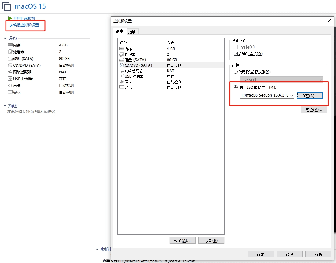 修改虚拟机,配置macOS镜像文件