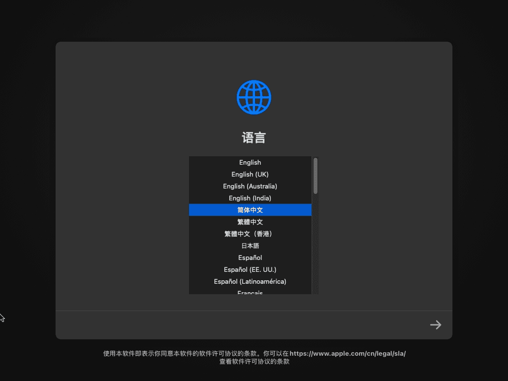 1 打开虚拟机,进行安装macOS系统