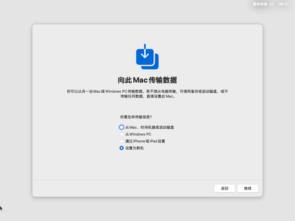 17 因为我们前面没有登录Apple账户,所以这里需要创建一个本地账户,建议用户名使用纯英文字符