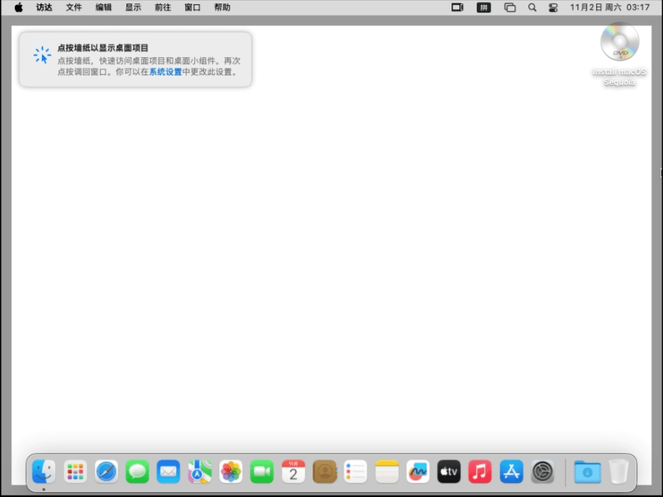 23 大功告成!现在终于进入到macOS 15的桌面了,但是你需要等一下,因为现在可能有点卡