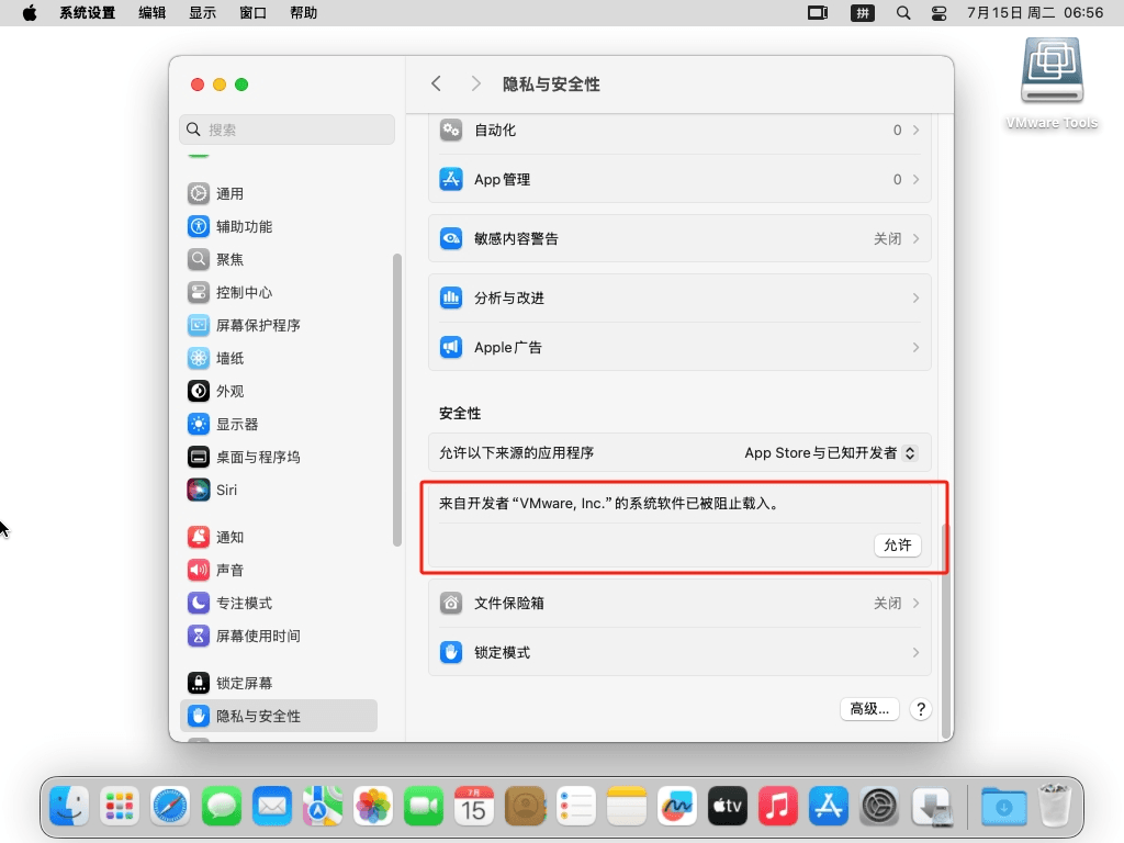 VMware17虚拟机成功安装MacOS15.5系统后,可能会出现以下几个问题,下面罗列可能出现的问题以及解决方案。